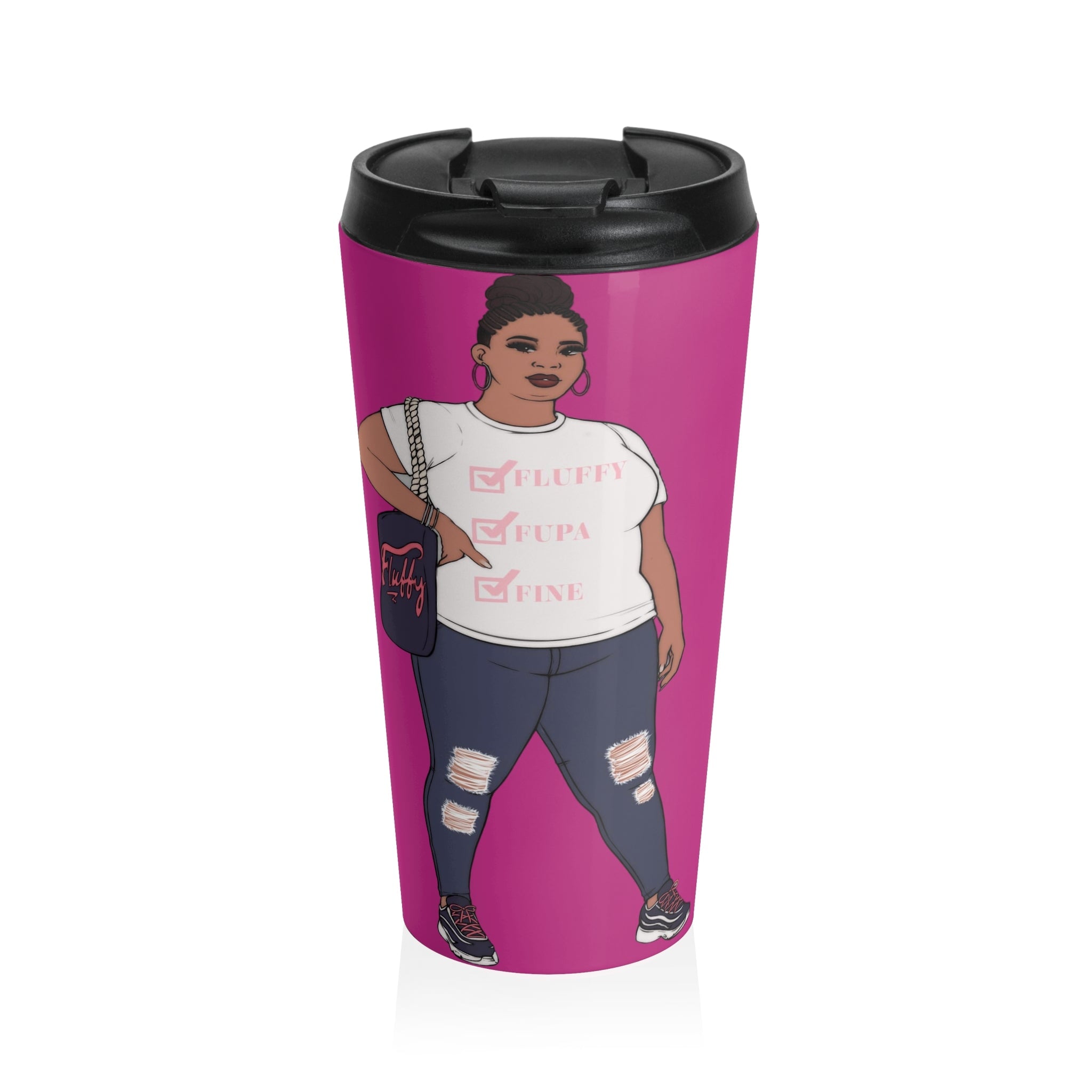 This stainless steel travel mug features a caricature design from the Show Off Your Fluff Collection. Perfect for those who love unique and fun designs, this mug is leak-proof, dishwasher-safe, and has a BPA-free lid. The 15oz size is ideal for on-the-go use.