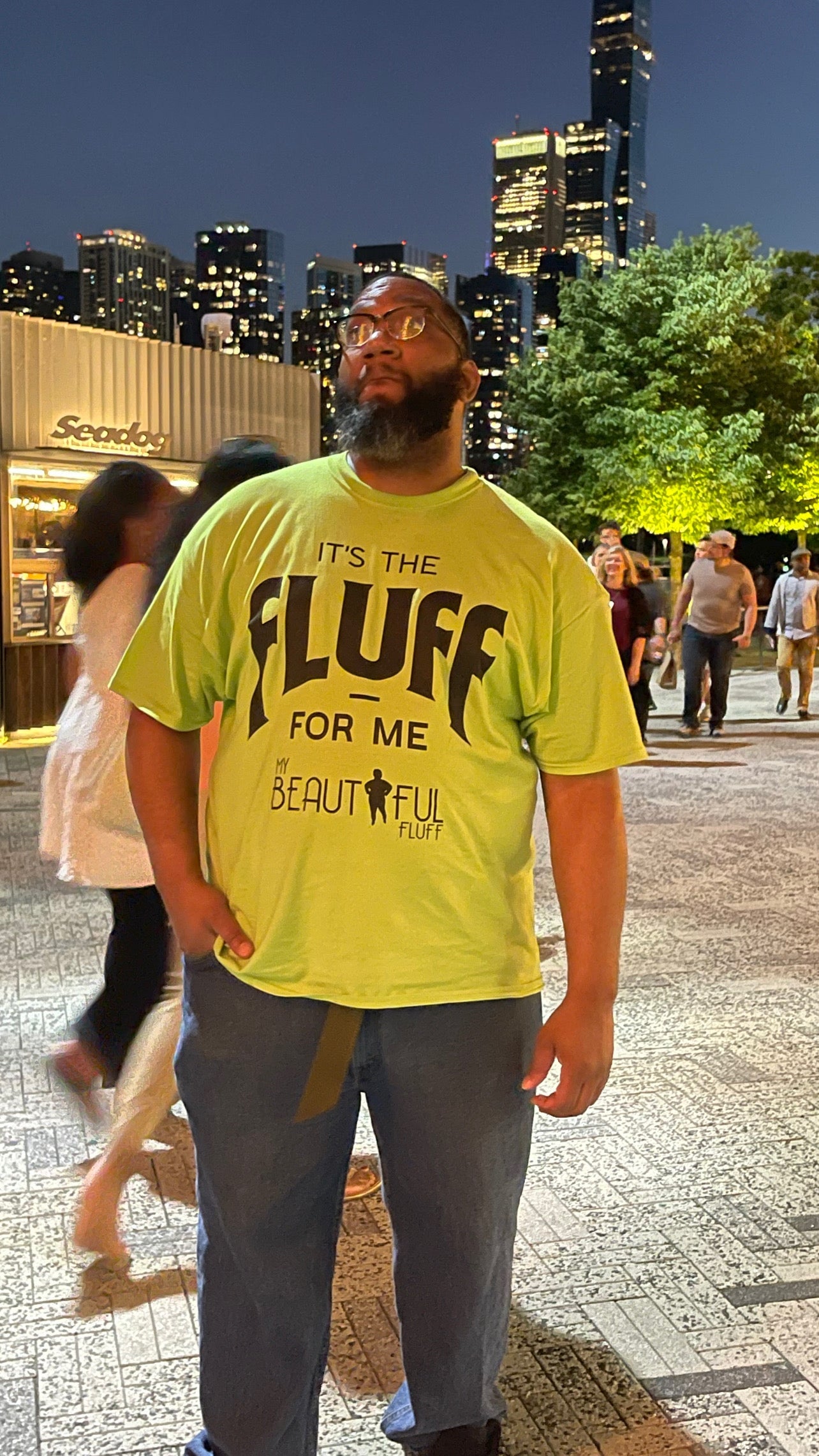 - Bold Statement: Features "It's the Fluff for Me" prominently displayed on the chest in a sleek, modern sans-serif font.